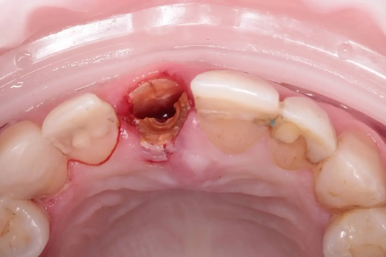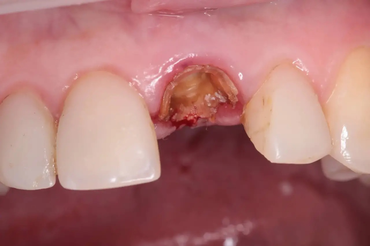 Удалили зуб и использовали метод корневого щита для установки импланта